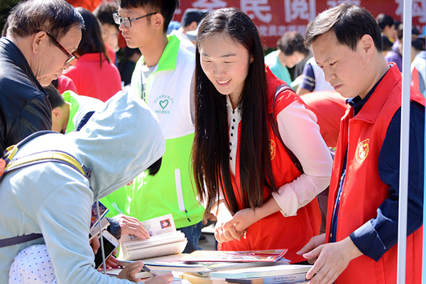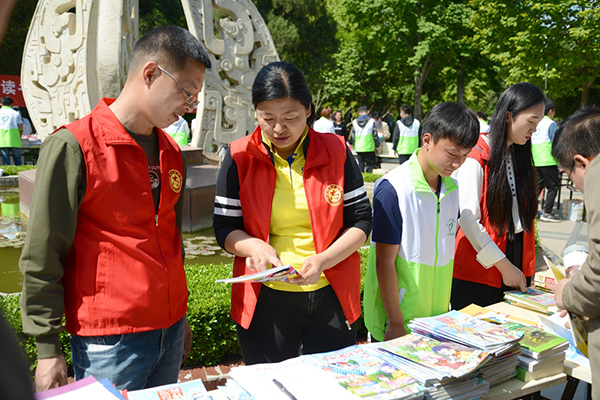 喜迎“世界讀書日” 鄭州紫荊山公園支起愛心書攤